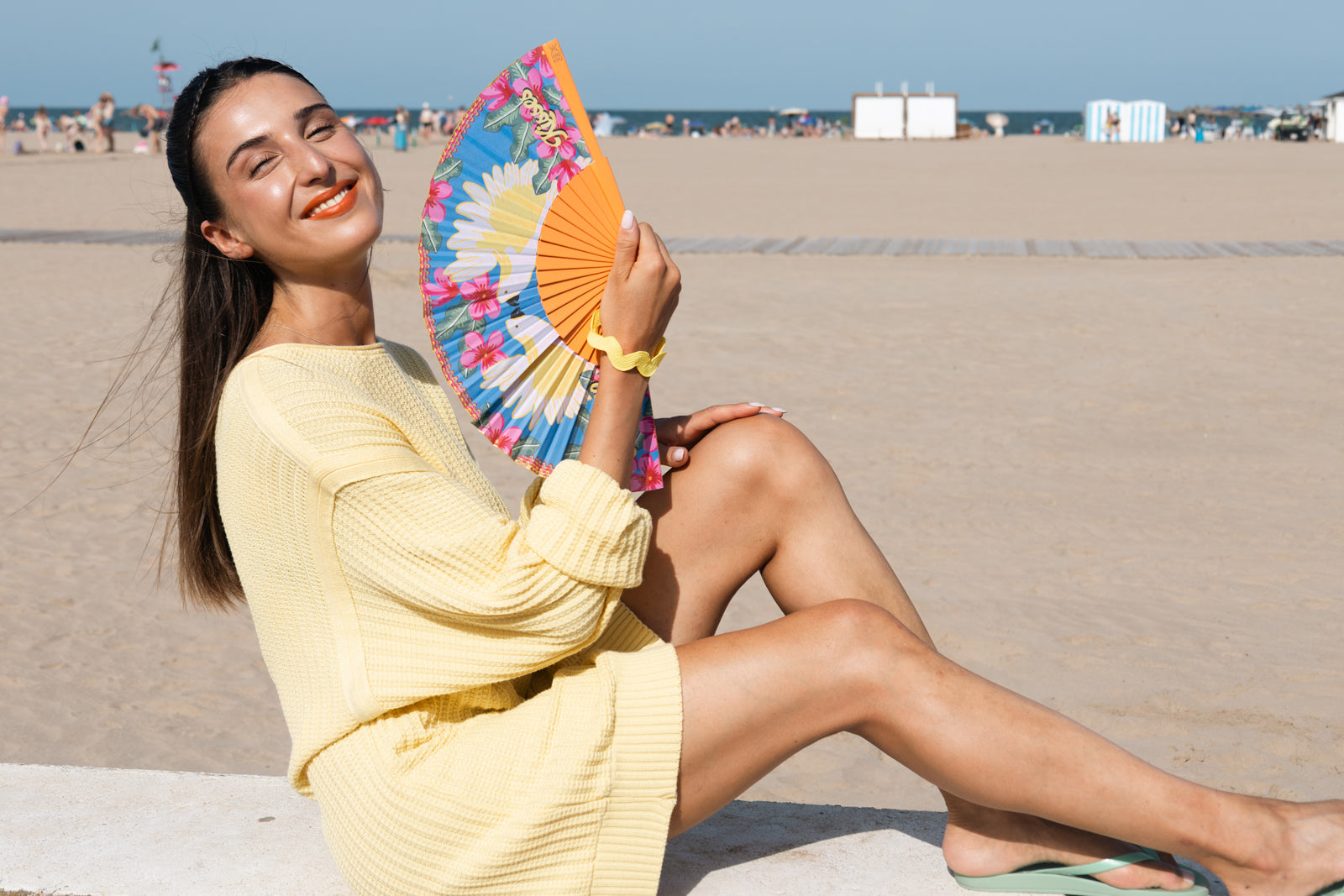 The curvy border offers a colourful interpretation of the Copacabana beach promenade and is also suggestive of South American decorations as seen on maracas and other handicrafts. Shake that tail feather to this pretty little thing.