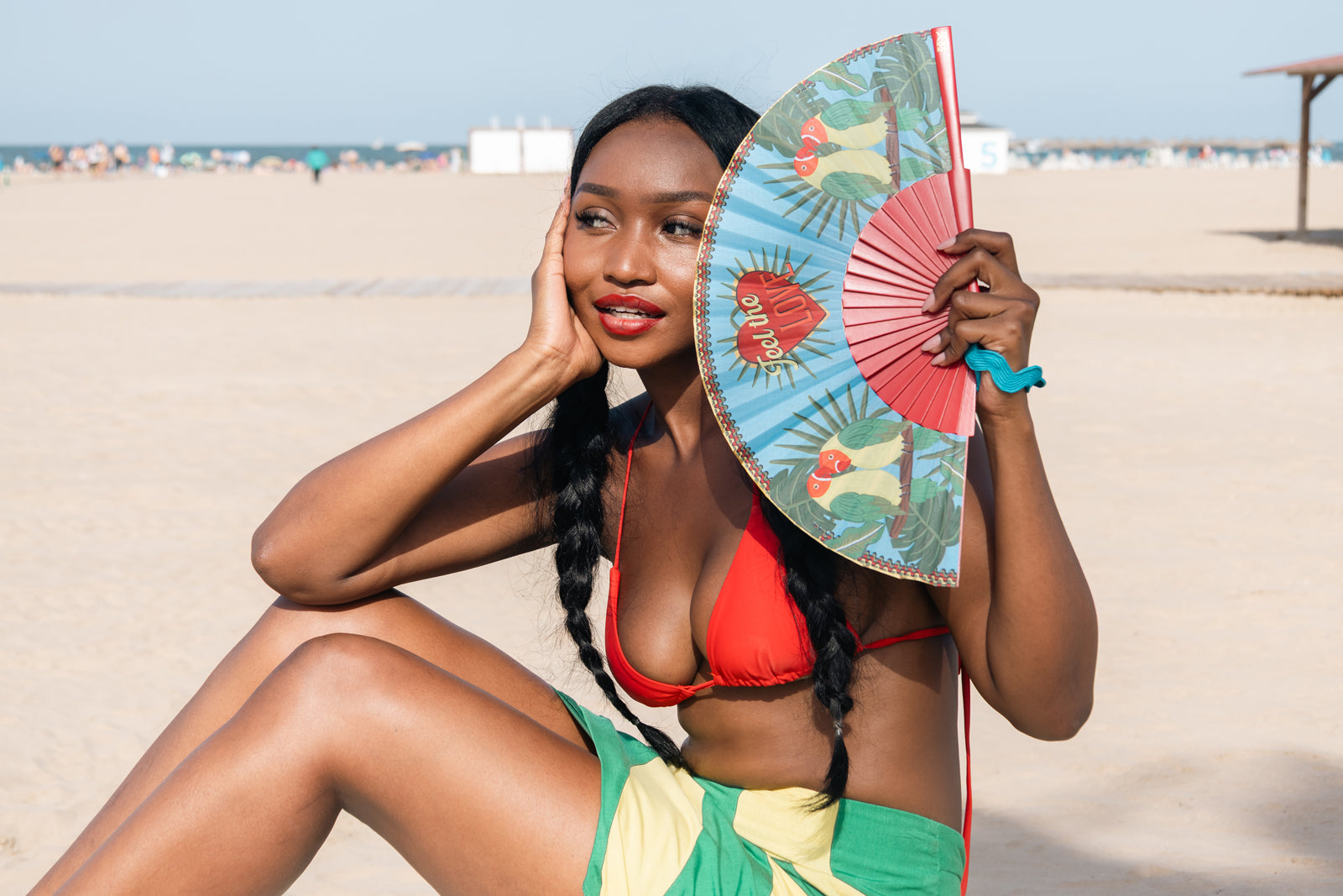 With its hot reds, greens and yellows and the decorative border pattern - one can feel the influence of South American culture, and this fan is perfect for festivals, carnivals, fiestas. And of course, the love ceremony of ceremonies, weddings! Feel the love!