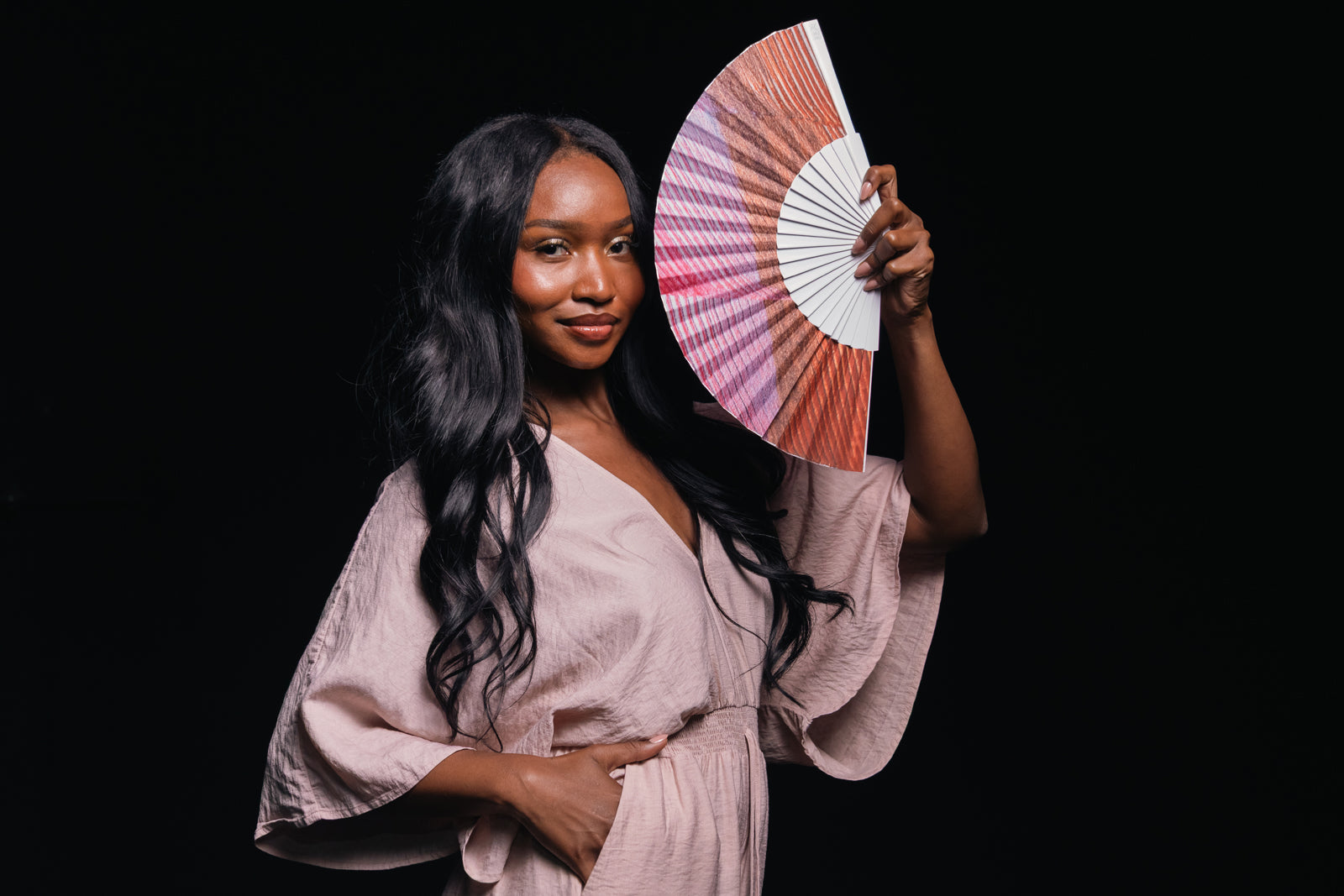 Khu Khu The Cardinal Hand-fan, from the Painted Pleasures Hand-fan Collection - Chic, colourful, and cool hand-fans